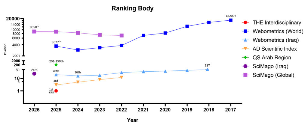 | Webometrics (Iraq) | 26 | 20 | 16 | 18 | 29 | 35 | 38 | 44 | 51 | - |